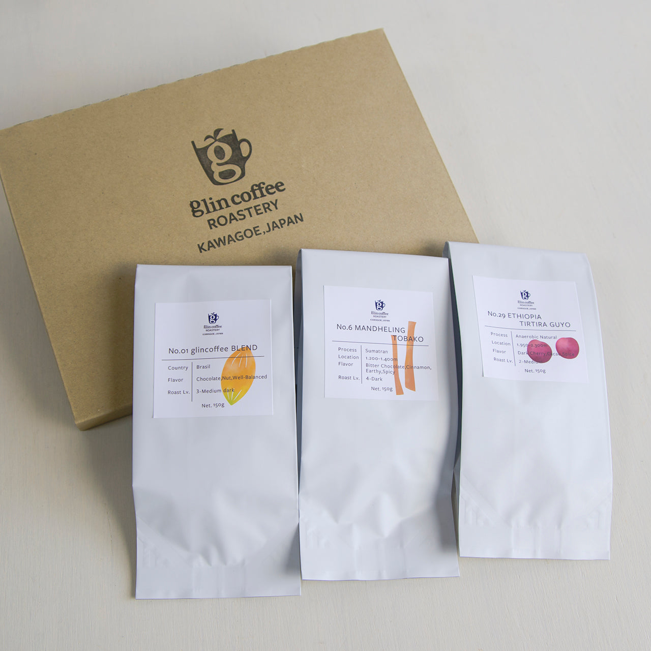 *当店で取り扱っている豆の中からお好きな3種類をお選びいただき、豆の名前を備考欄にご記入ください。