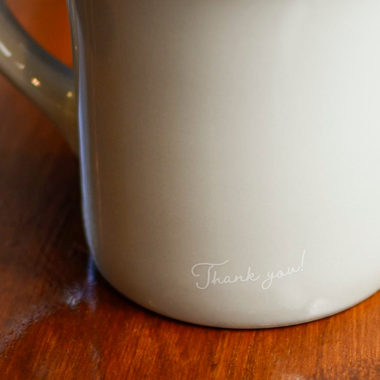 お店でスタッフがカップに書くメッセージをイメージして、Thank you!の文字が背面に入っています。